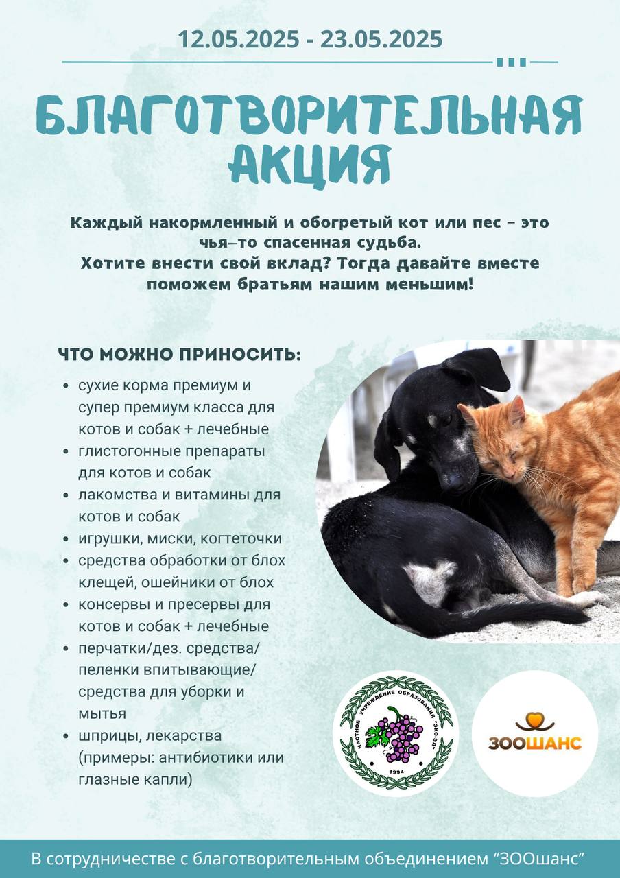 Наш школьный клуб волонтеров приглашает всех учеников с 1 по 11 классы к участию в благотворительной акции в завершении учебного 2024/2025 учебного года.
