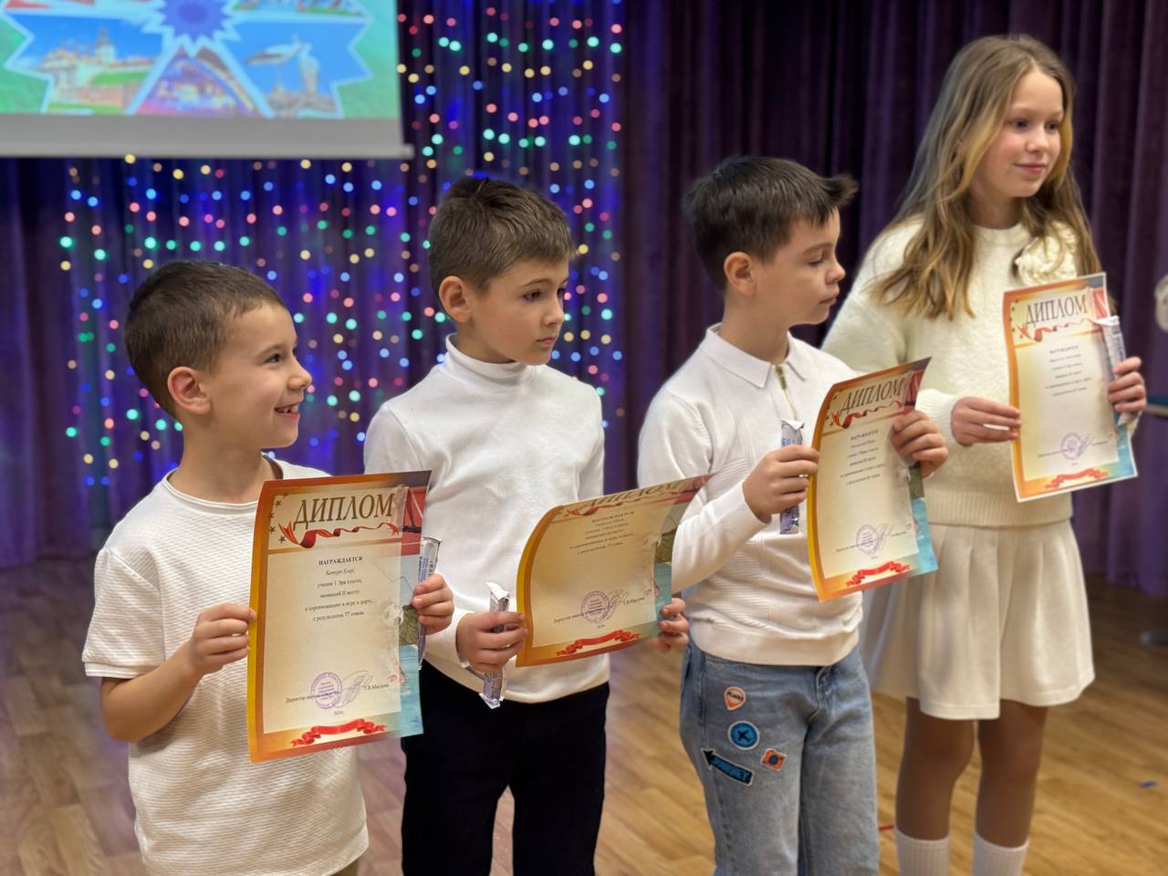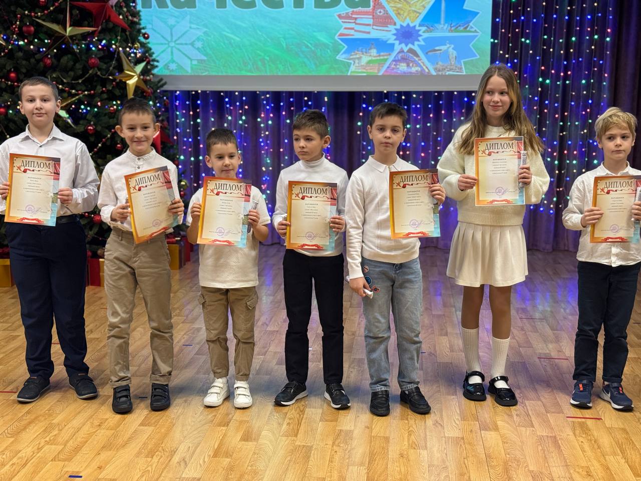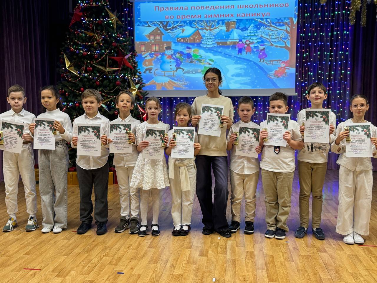 Окончание второй учебной четверти в начальной школе началось с торжественной линейки с награждениями, а завершилось тематическим проектным днем «Новогодний калейдоскоп».