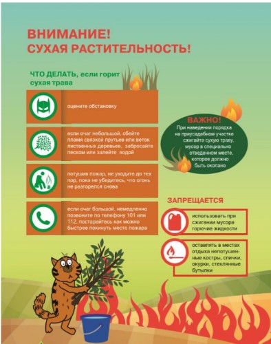 Ежегодно работники МЧС среди основных причин возгораний в природных экосистемах выделяют неосторожное обращение с огнем гражданами и выжигание сухой растительности, т. е. человеческий фактор. Чаще всего жертвами таких пожаров становятся наводящие на участках порядок пенсионеры. В связи с этим МЧС призывает соблюдать правила пожарной безопасности при наведении порядка на придомовой территории и земельных участках, а также при использовании специальных приспособлений для приготовления пищи (мангалов, грилей, барбекю и др.).