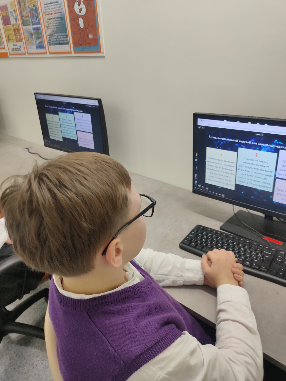 - беседы с учащимися с использованием интерактивных форматов, игр и видеоматериалов: «Компьютер и безопасность», «Вишинг. Азбука цифровой безопасности».