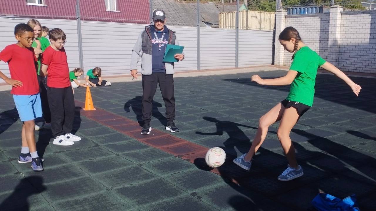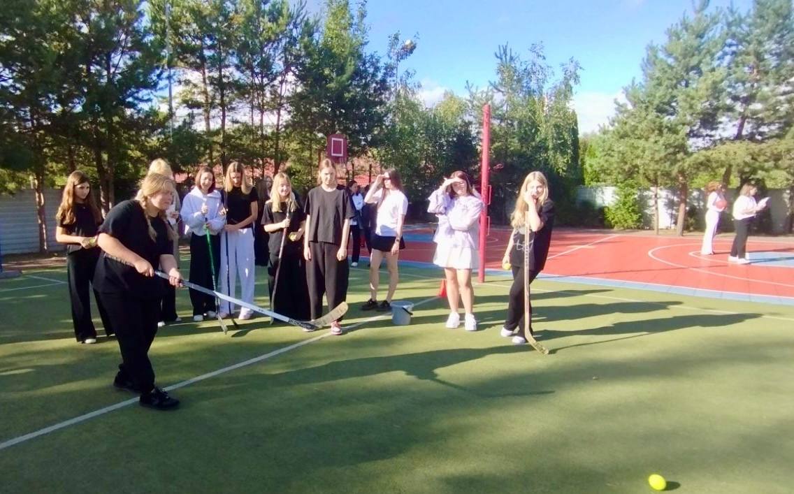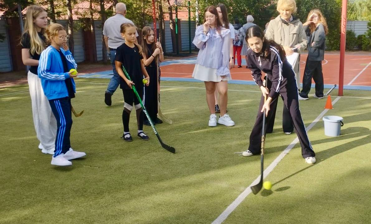 Команды 5-8 классов соревновались в командных прыжках, точности футбольного удара, ловкости при попадании по баскетбольной корзине и линейности на хоккее с теннисным мячом.